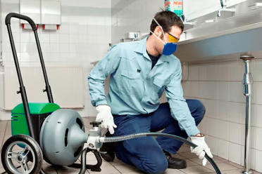 Limpeza e desobstrução de caixas de gordura em cozinhas residenciais e comerciais, eliminando acúmulos e prevenindo entupimentos e mau cheiro nas tubulações.